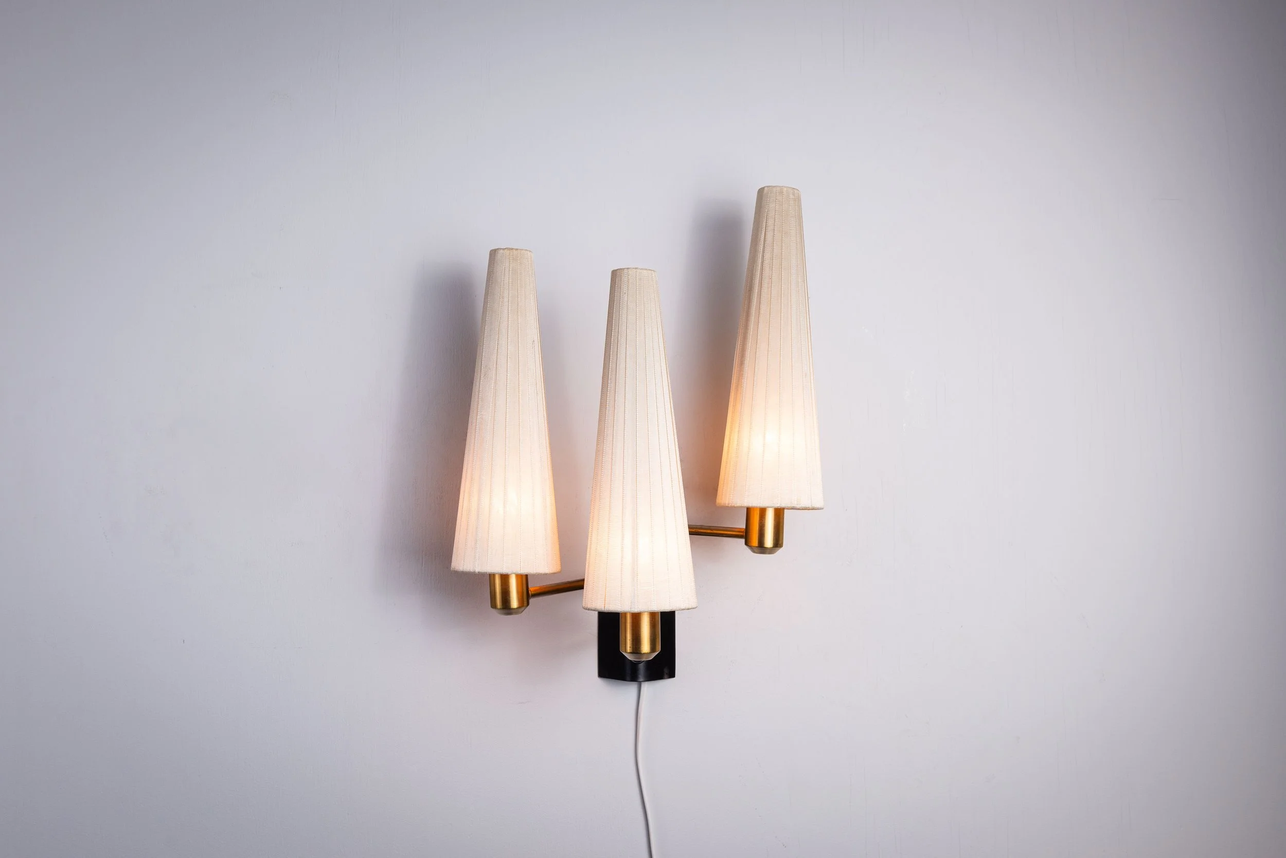 Scandinavian Wall Light with Three Shades and Brass Accents